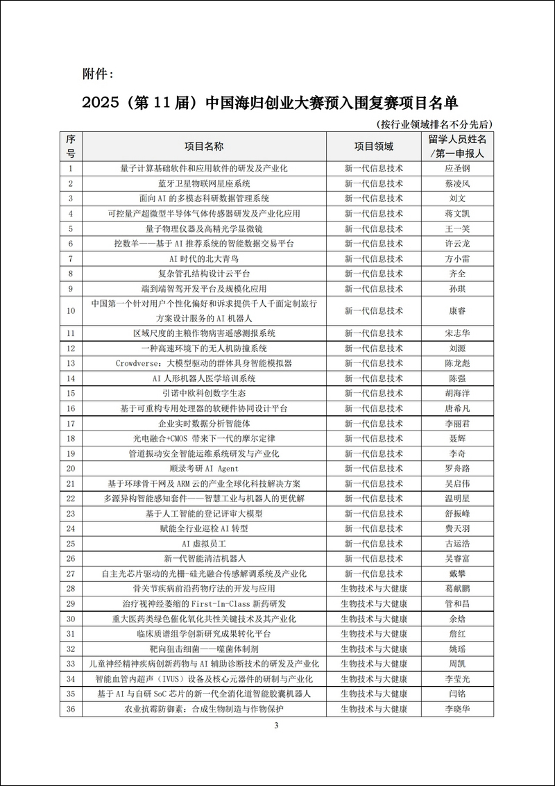 關于2025(第11屆)中國海歸創業大賽入圍復賽項目的公示